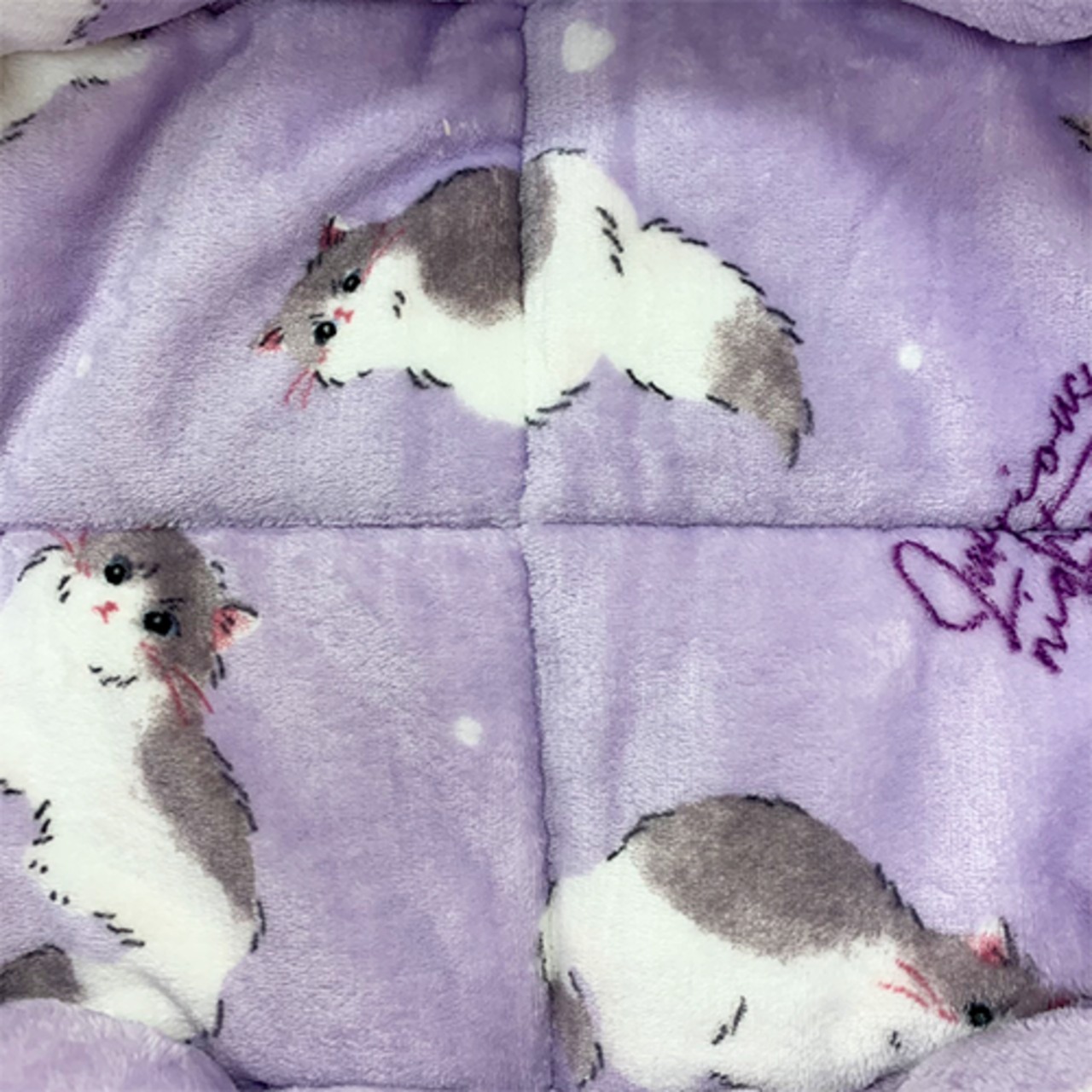 サテンラベンダー・まったり猫柄短ボア Mサイズ【PB2512-0504M】